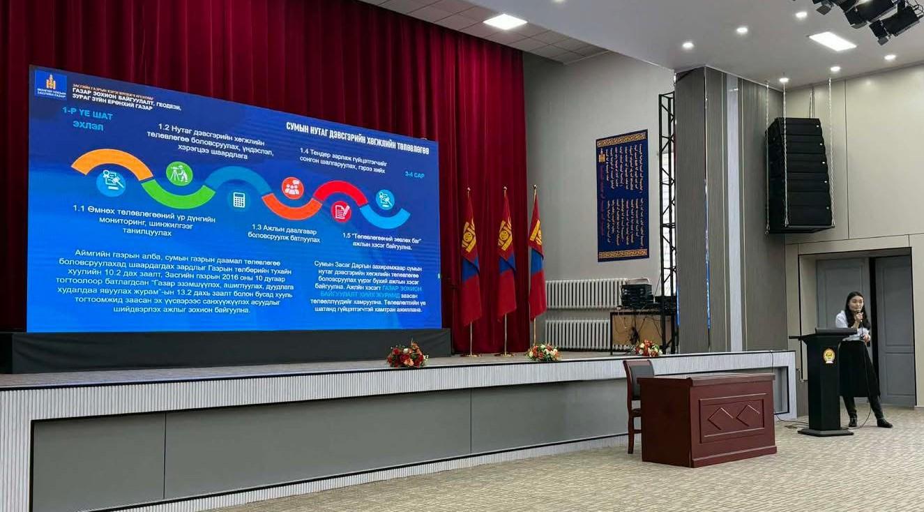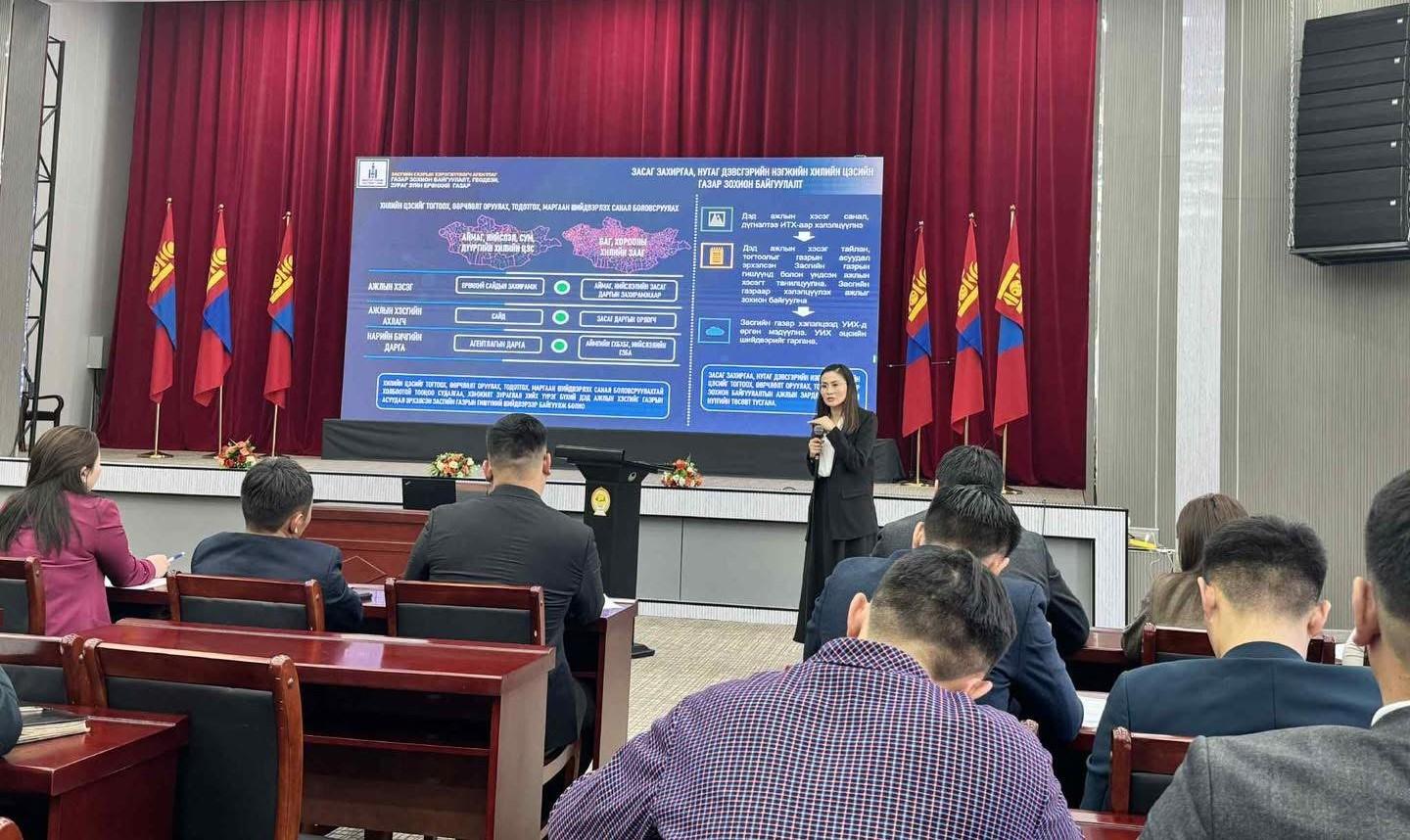 Газар Зохион Байгуулалт, Геодези, Зураг Зүйн Ерөнхий Газар, Ойн Газар болон “Хангай бүсийн уулын ландшафтыг нөхөн сэргээж, хамгаалах замаар экосистемийн үйлчилгээ болон орон нутгийн иргэдийн амьжиргааг сайжруулах” төсөл хамтран “Хангай бүсийн сургалт”-ыг 2025 оны 11 дүгээр сарын 18-ны өдрөөс 19-ний өдрүүдэд Архангай аймагт зохион байгуулж байна.