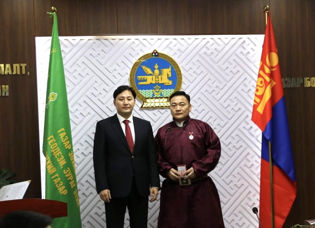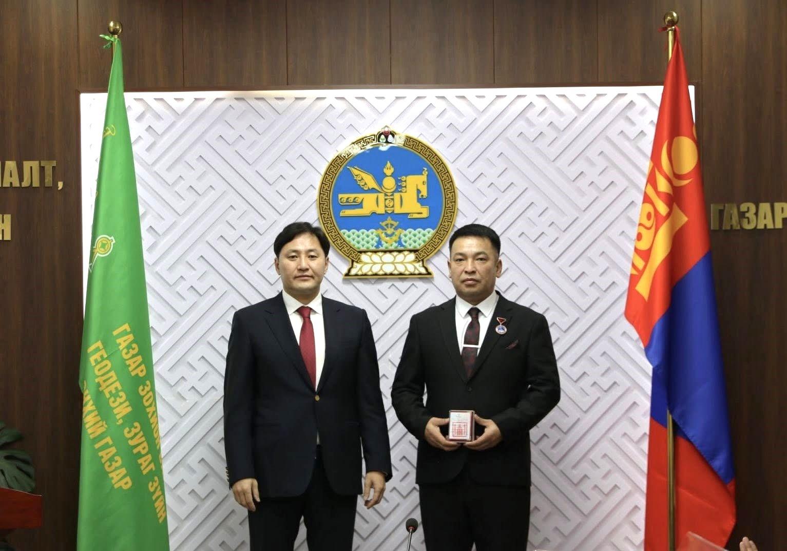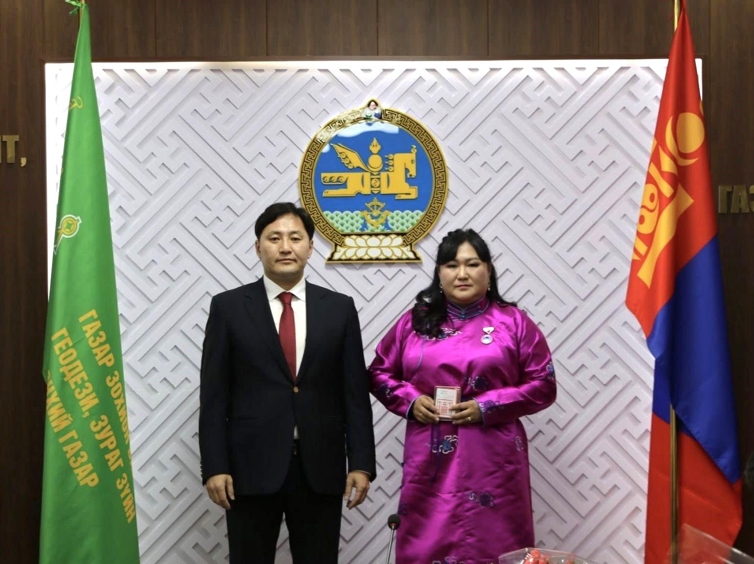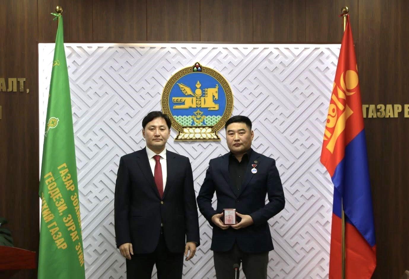 Шагналыг Газар зохион байгуулалт, геодези, зураг зүйн ерөнхий газрын дарга А.Энхманлай гардуулан өглөө.