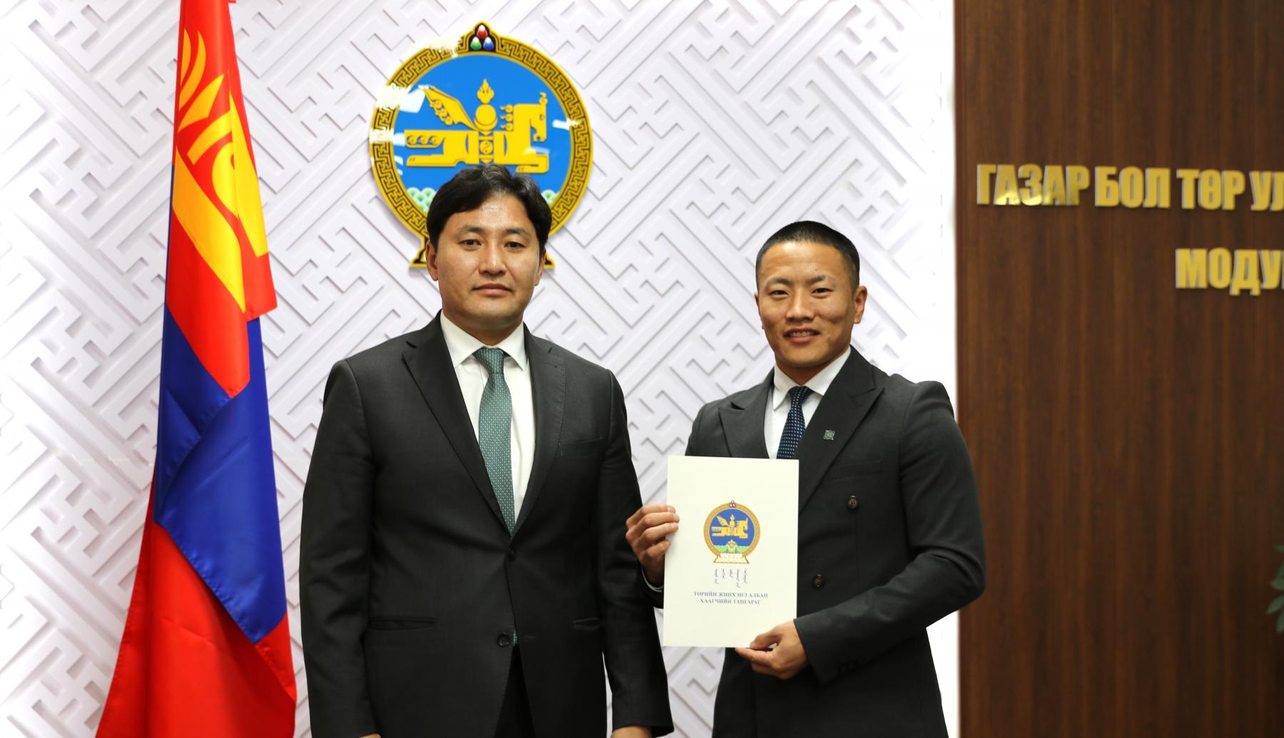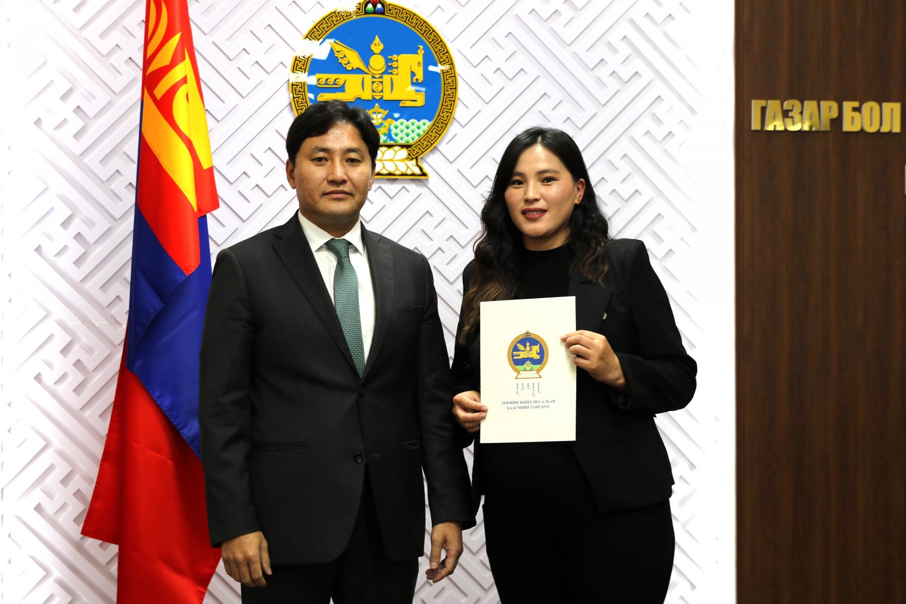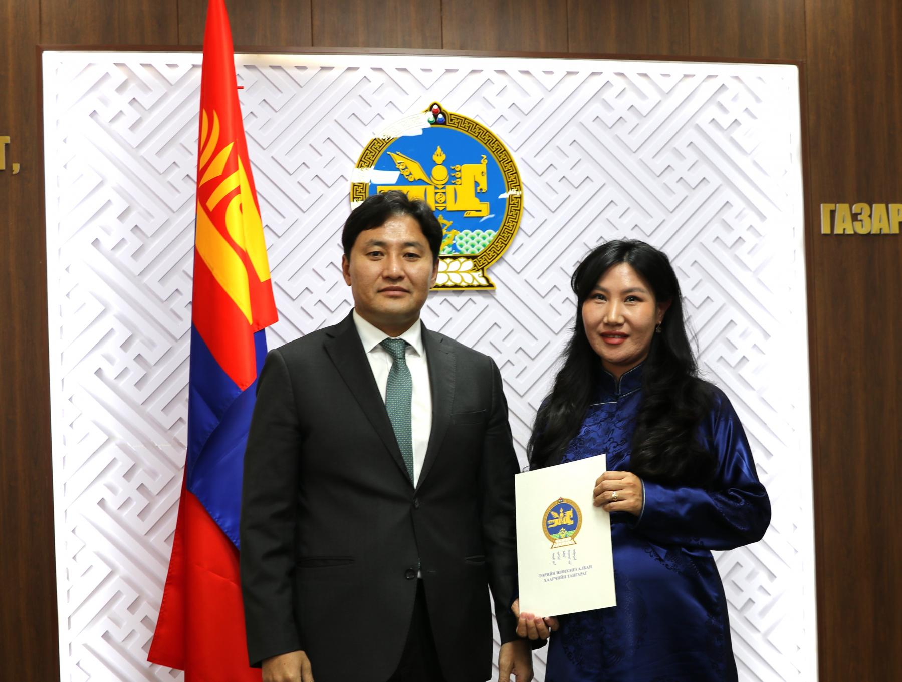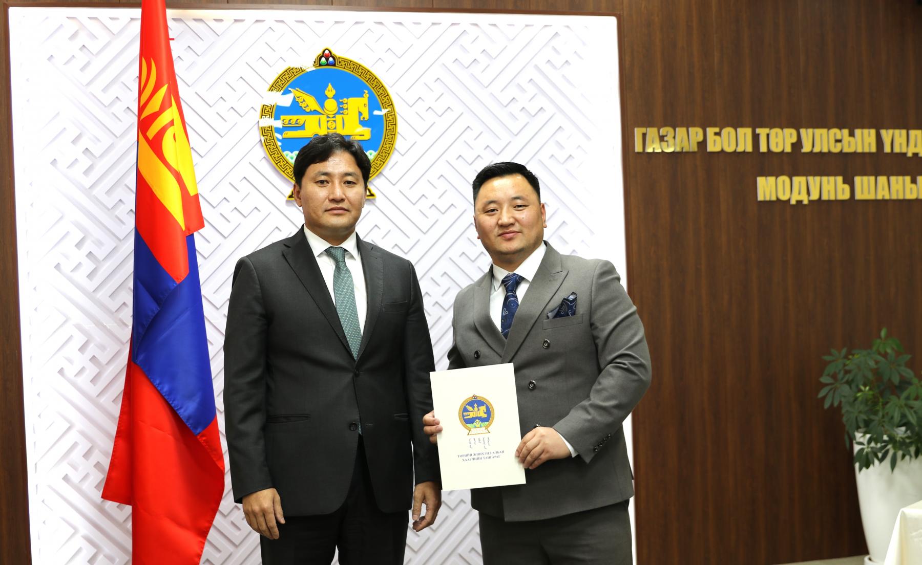 Өнөөдөр Засгийн газрын агентлагийн эрх зүйн байдлын тухай хуулийн 8 дугаар зүйлийн 8.4 дэх хэсэг, Төрийн албаны тухай хуулийн 36 дугаар зүйлийн 36.1 дэх хэсэг, Монгол Улсын Ерөнхийлөгчийн 2024 оны 84 дүгээр зарлигаар батлагдсан “Төрийн жинхэнэ албан хаагчийн тангараг өргөх ёслолын журам”, Төрийн албаны зөвлөлийн 2024 оны 402 дугаар тогтоолоор батлагдсан “Төрийн албан тушаалд туршилтын хугацаа хэрэглэх болзол, журам”-ыг тус тус үндэслэн Газар зохион байгуулалт, геодези, зураг зүйн ерөнхий газар болон Нийслэлийн газар зохион байгуулалтын албаны дараах албан хаагчдыг “Төрийн жинхэнэ албан хаагчийн тангараг” өргүүллээ. Үүнд: