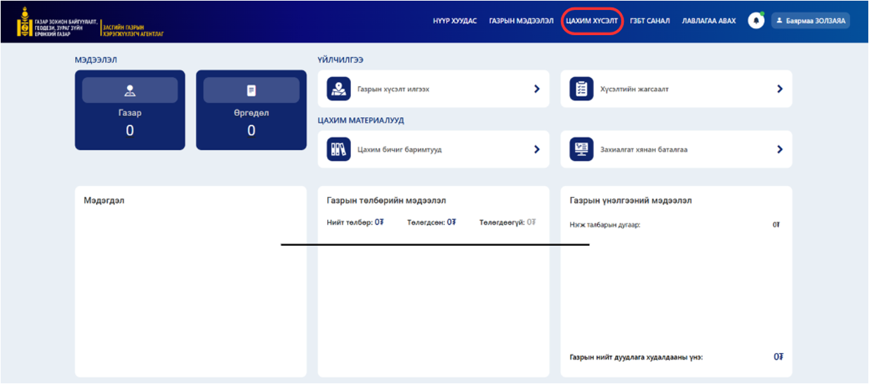 Та дан систем ашиглан нэвтэрсэнийхээ дараа цахим хүсэлтийг сонгоно.