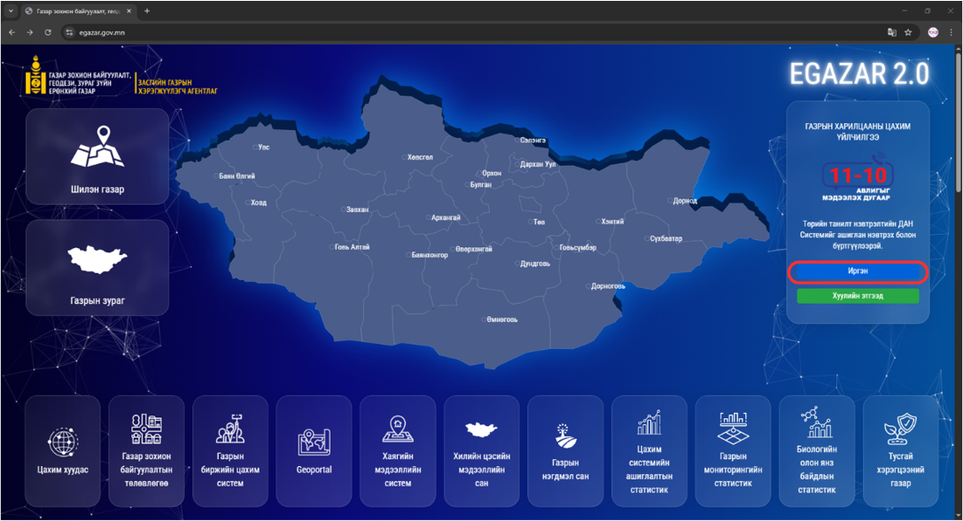 Egazar.gov.mn сайт руу “Иргэн” гэсэн сонголтоор орно.
