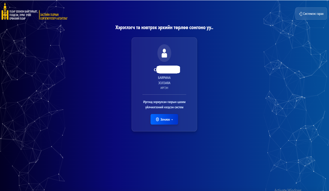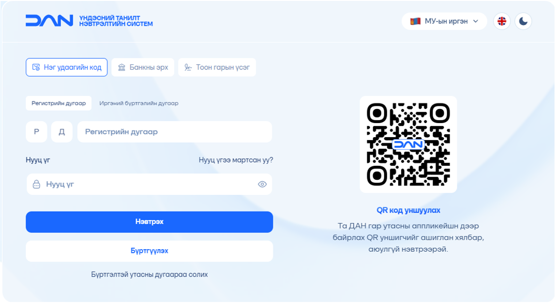 Дан систем болон банкны эрхийн аль нэгээр нэвтрэнэ